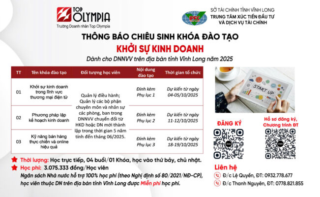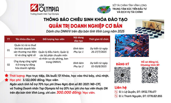 THÔNG BÁO CHIÊU SINH CÁC KHÓA ĐÀO TẠO NÂNG CAO NĂNG LỰC QUẢN TRỊ KINH DOANH CHO DOANH NGHIỆP TẠI VĨNH LONG NĂM 2025