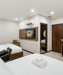 Trang bị: Ấm đun nước, máy sấy tóc, gương đèn led, hệ tủ quần áo và bộ vệ sinh phục vụ cho nhu cầu lưu trú của du khách (bộ bàn chải, dao cạo râu, lược, chụp tóc, xà phòng, tăm bông), tivi, tủ lạnh