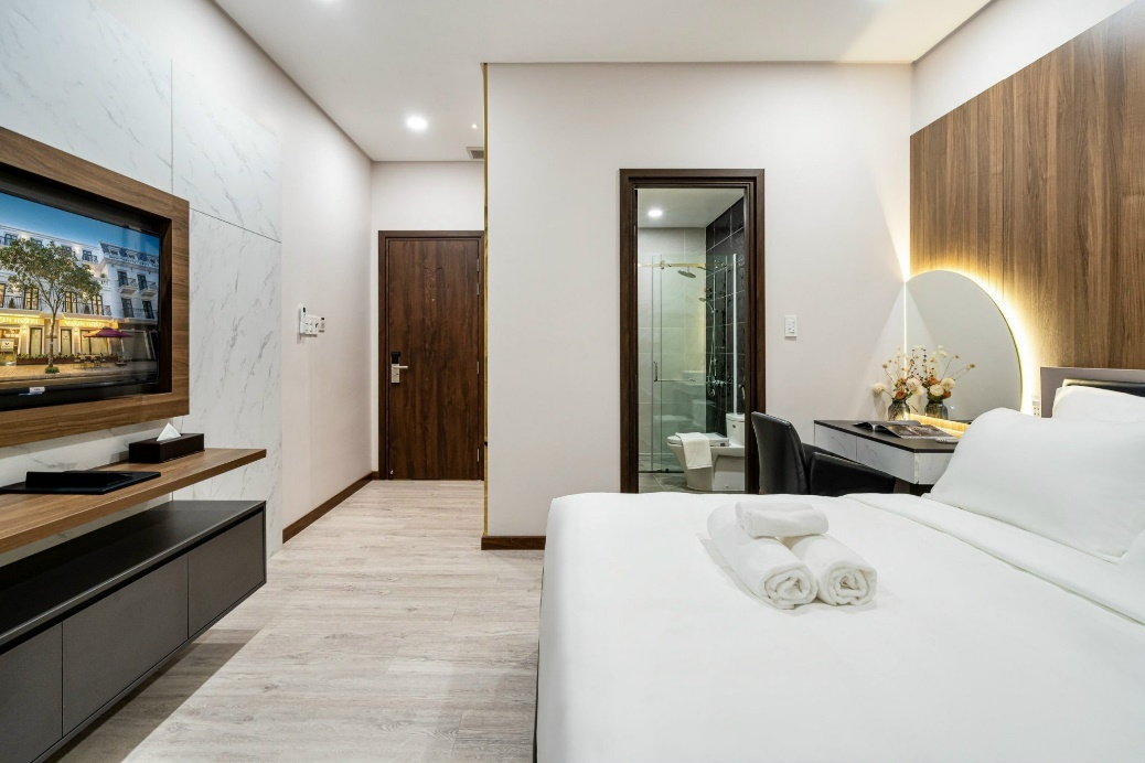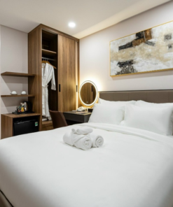 Các phòng đều được trang bị đầy đủ vật dụng, thiết bị phục vụ cho nhu cầu lưu trú của du khách. – Mỗi phòng đều được trang bị gương đèn led chiếu sáng, hệ tủ treo quần áo, ấm đun nước, máy sấy tóc, bộ ly/ tách, nước suối/ cà phê miễn phí