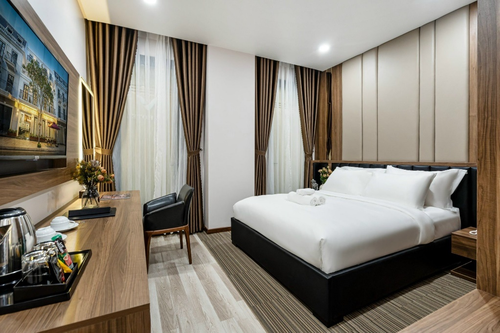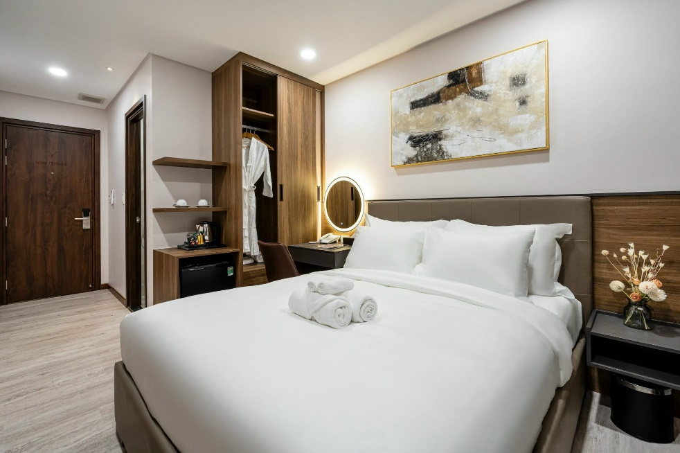 *Phòng Superior: diện tích 24m2, giường 1m6x2m, ban công
