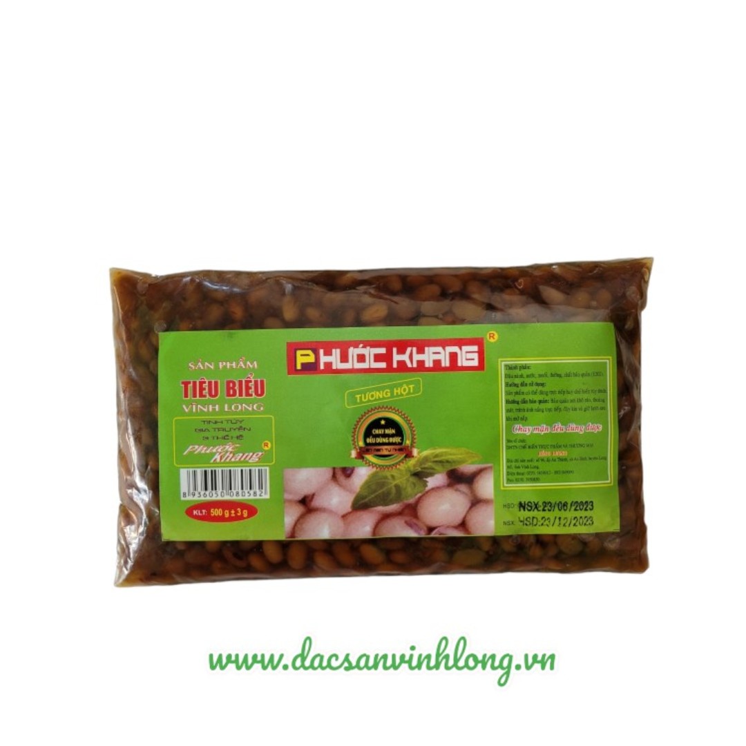 Tương hột Phước Khang chính gốc, sản xuất tại DNTN Chế biến Thực phẩm và Thương mại Hồng Hương.